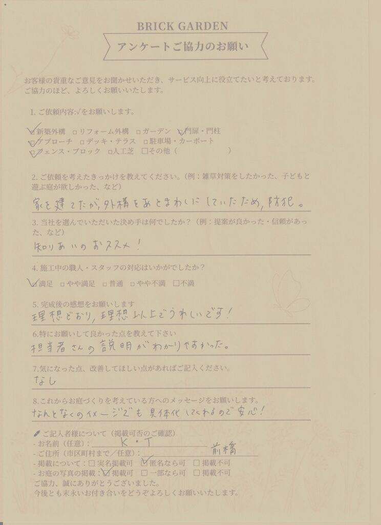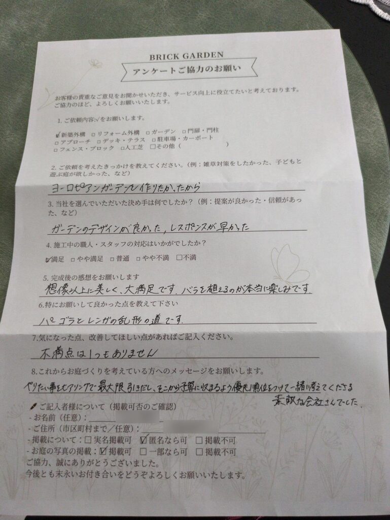 ブリックガーデンをご利用いただいた、お客様の声を掲載しています。
