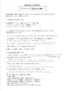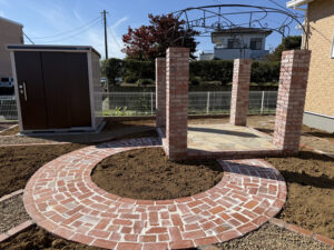 特にこだわって設計したパーゴラとレンガの乱形の小径を気に入っていただけたことは、職人・スタッフ一同、大きな励みになりました。